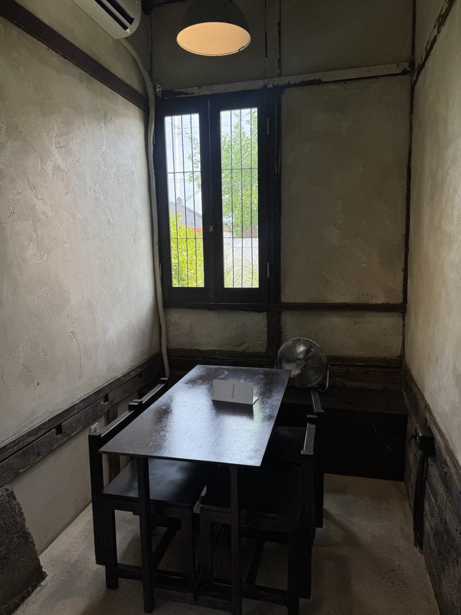 뒷마당 쪽에 자리도 있는데 더우니 안쪽으로 앉아볼게요.