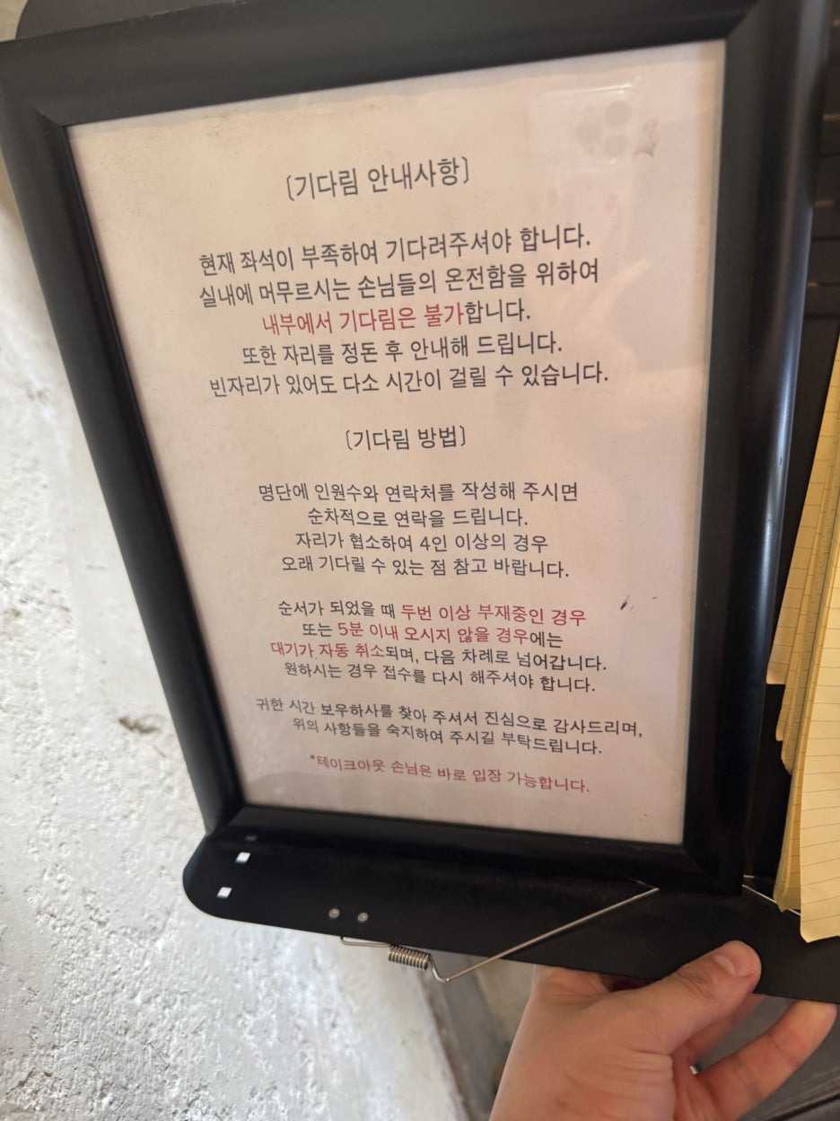 자리가 없을 땐 웨이팅 후 입장 가능하십니다.