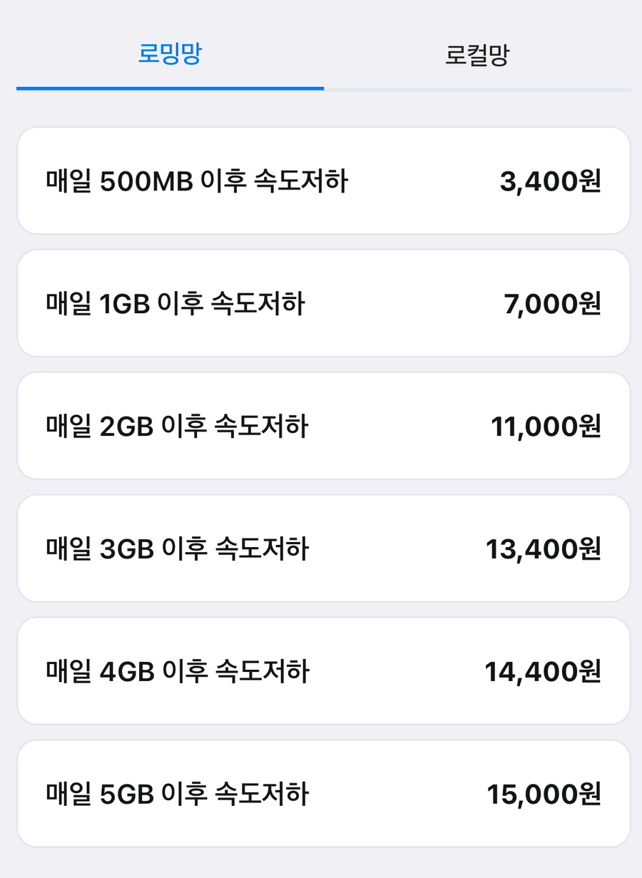 검색해보니 로컬망 추천이 많아서 저도 로컬망으로 선택했어요. 더 좋은 총알로컬망이 일본에서는 사용가능해서 결론적으로는 총알로컬망으로 픽했어요!